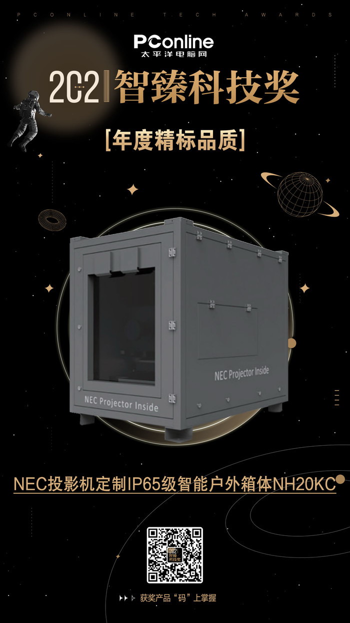 戶外亮化、夜游經(jīng)濟(jì)的興起,賦予了投影機(jī)多元化的應(yīng)用方式,戶外箱體的需求也應(yīng)運(yùn)而生。與市面上魚龍混雜的非專業(yè)箱體不同,NEC投影機(jī)定制IP65級智能戶外箱體NH20KC憑借安心防護(hù)、恒溫散熱、智能監(jiān)控三大優(yōu)勢,榮獲PConline2021智臻科技獎年度精標(biāo)品質(zhì)獎項(xiàng)。
