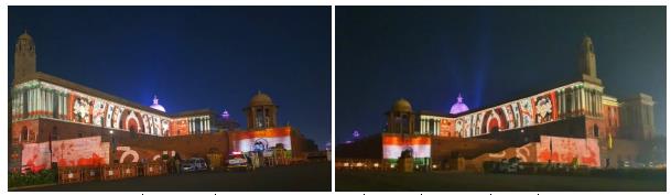 四十多臺科視Christie D20WU-HS 激光投影機在秘書處大樓的南北兩座對稱建筑的護墻上進行時長六分鐘的投影映射表演;這兩座建筑采用印度-撒拉遜復興風格,是主要政府機構的辦公地點。這些投影機的安裝和調試工作由科視的長期合作伙伴 Modern Stage Services 負責,該公司是非常著名的系統(tǒng)集成商,在印度各地承建了眾多引人矚目的大型項目。這是初次在“鳴金收兵”儀式期間進行大規(guī)模投影映射表演。