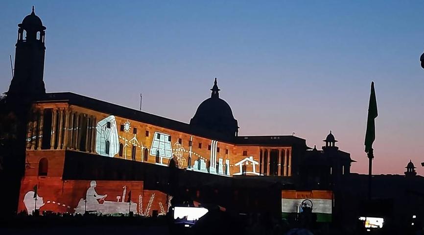 新德里(2022 年 2 月 9 日):科視Christie® 激光投影機在印度首都標志性秘書處大樓立面進行的盛大投影映射將一年一度“鳴金收兵”儀式的恢弘氣勢和莊嚴肅穆提升到全新的高度。