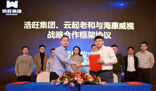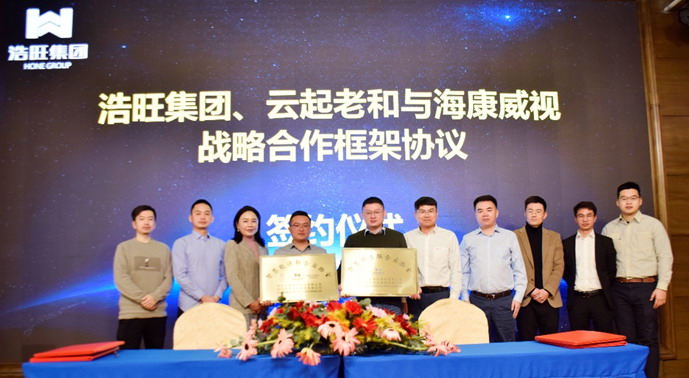 云和科技、浩旺集團(tuán)與?低暫灱s三方代表合影