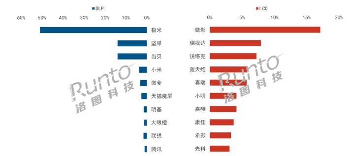 2022年1月 中國智能投影市場分技術(shù)別品牌份額