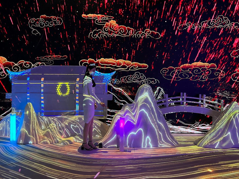 作為本次展會(huì)最吸睛的展項(xiàng)之一,“星火·新生沉浸式體驗(yàn)展”以“科技+文化+創(chuàng)意”為理念,融合數(shù)字科技、裸眼3D、全息技術(shù)、可視化成像技術(shù)、機(jī)械裝置技術(shù)等業(yè)內(nèi)前沿設(shè)備與技術(shù),完美地構(gòu)建了一場(chǎng)數(shù)字光影科技所呈現(xiàn)的沉浸式交互體驗(yàn)。