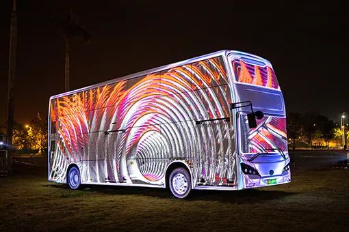深圳光影藝術(shù)季之光影巴士項(xiàng)目位于深圳市寶安區(qū)青少年宮廣場(chǎng),采用6臺(tái)WITIW(威迪泰)投影機(jī)以多機(jī)融合投影方式實(shí)現(xiàn)沉浸式巴士外觀投影,項(xiàng)目于2021年12月完工投入使用。