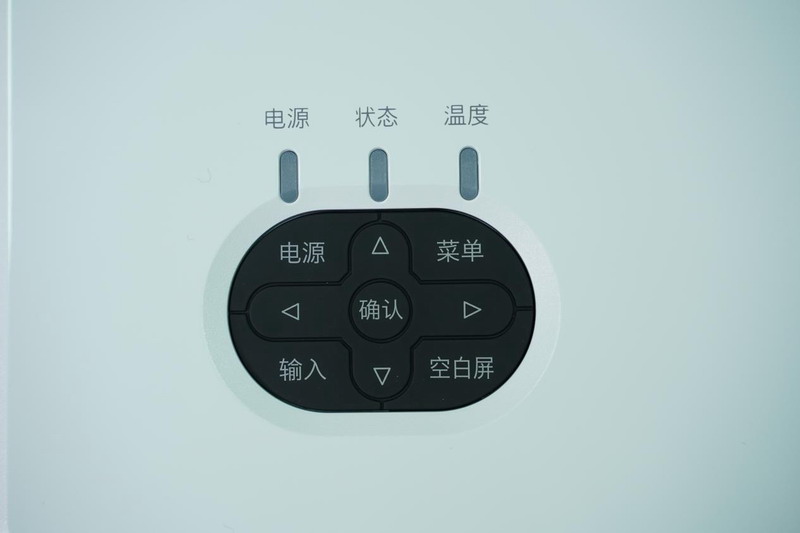 理光PJ RW2208L的功能按鍵與變焦、聚焦調(diào)節(jié)均設(shè)置在機(jī)身頂部,功能按鍵配以黑底白字,辨識(shí)度較高。此外,功能按鍵采用了符合大部分人操作習(xí)慣的十字導(dǎo)航設(shè)計(jì),稍加熟悉之后便能輕松操作。理光PJ RW2208L的狀態(tài)指示燈被有序的設(shè)置在功能按鍵區(qū)域的上方,分別可提供電源、運(yùn)行狀態(tài)和溫度的提示,方便用戶隨時(shí)掌握投影機(jī)的狀態(tài)。