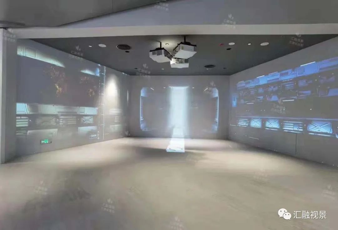 館內(nèi)所采用的沉浸式投影是由多通道的投影融合技術(shù)實現(xiàn),將畫面投影到大型或多面的投影幕上,也運用了高清LED拼接屏來實現(xiàn),營造出裸眼3D的視覺效果。
