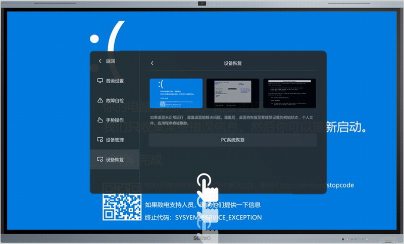 據(jù)售后服務統(tǒng)計數(shù)據(jù),幾乎一半的大屏故障都源于系統(tǒng)異常。要是遇大屏系統(tǒng)異常時,老師也無需慌張,更不用花時間琢磨和等待外援處理。只需上拉菜單輕點“系統(tǒng)恢復”即可恢復系統(tǒng)正常狀態(tài),繼續(xù)上課。就算斷網(wǎng)了也可正常使用,不影響課堂進度。