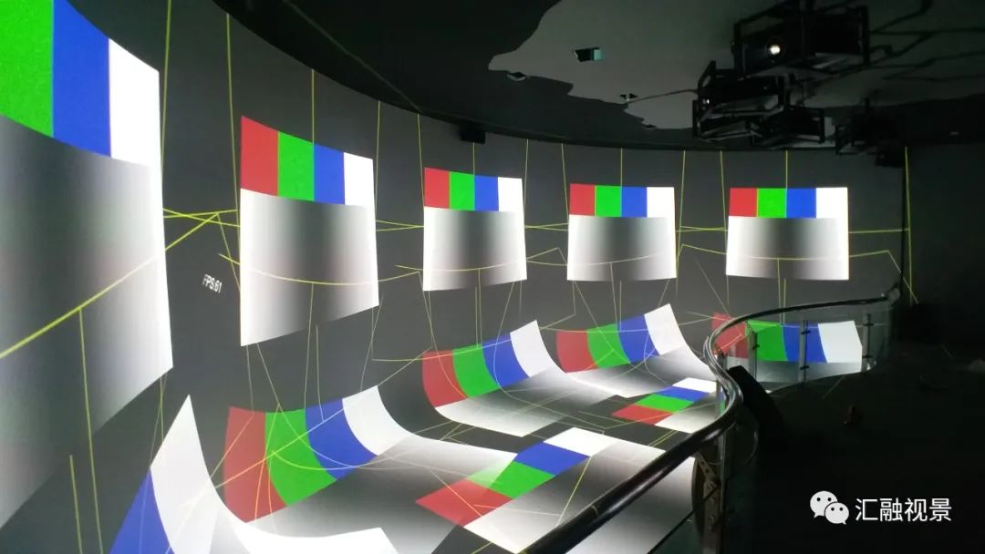 碗幕融合分為兩個部分,分別為碗壁和碗底,碗壁有五臺投影機(jī),碗底則分為兩排,第一排為三臺,第二排為六臺