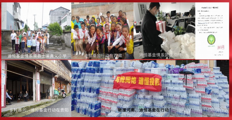 迪恒于2018年成立了迪恒基金公會(huì),承諾迪恒產(chǎn)品銷售額的3‰投入到迪恒基金公會(huì),以更多樣化的形式回饋社會(huì),弘揚(yáng)企業(yè)及企業(yè)家商道精神回饋社會(huì)、服務(wù)社會(huì)。截止今日,迪恒基金在四川、江西、上海、安徽、武漢、河南、貴州等地開展各項(xiàng)公益活動(dòng)。作為上海滁州商會(huì)常委副會(huì)長(zhǎng)的迪東集團(tuán)董事長(zhǎng)王洋先生也在第一時(shí)間為疫情捐贈(zèng)蓮花清瘟等大批抗疫物資。迪恒基金在疫情之初就調(diào)集防護(hù)口罩貨源從迪東集團(tuán)南京倉發(fā)貨,向全國合作伙伴快遞防護(hù)口罩;