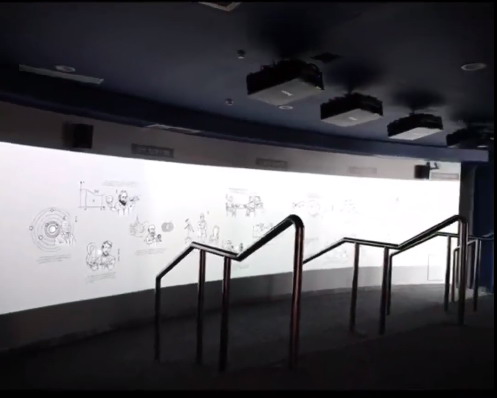 這個(gè)墻面互動(dòng)裝置,是通過索諾克Sonnoc高端工程投影機(jī)連接感應(yīng)裝置打造而成。投影畫面和參觀者的緊密實(shí)時(shí)互動(dòng),不僅增強(qiáng)了參觀觀眾體驗(yàn)的興趣,更讓觀眾記住了展館想展示的內(nèi)容。