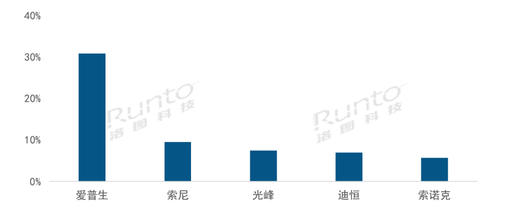 2021年商務激光投影出貨量為4.4萬臺,同比增長43.9%。在商務市場中,光源轉向激光正在成為高端需求中的風向,眾多品牌選擇在該市場發(fā)力。愛普生在商務市場不僅推出了CB-L200X/W/F系列,填補了4000-5000流明商務長焦激光投影的空白,更是推出全球最小3LCD激光投影EF-11,一系列動作使愛普生市場份額達到24%,市占第一。其次是NEC排名第二,NEC投影機著眼3500-6000流明段的行業(yè)場景需求,主推李白、騎士、空靈三大系列,實現商用、教育、沉浸式等領域的全面覆蓋,市場份額達到16%。索諾克推出長江系列激光商務投影機共11款產品,亮度覆蓋3200-3600流明段,能夠滿足各類中小場景的應用,市占達到15.7%。