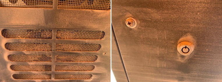 通風(fēng)導(dǎo)致大量水汽侵襲,令箱體部件、過濾網(wǎng)生銹腐蝕