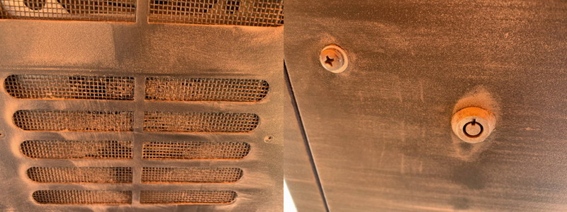 通風(fēng)導(dǎo)致大量水汽侵襲,令箱體部件、過(guò)濾網(wǎng)生銹腐蝕
