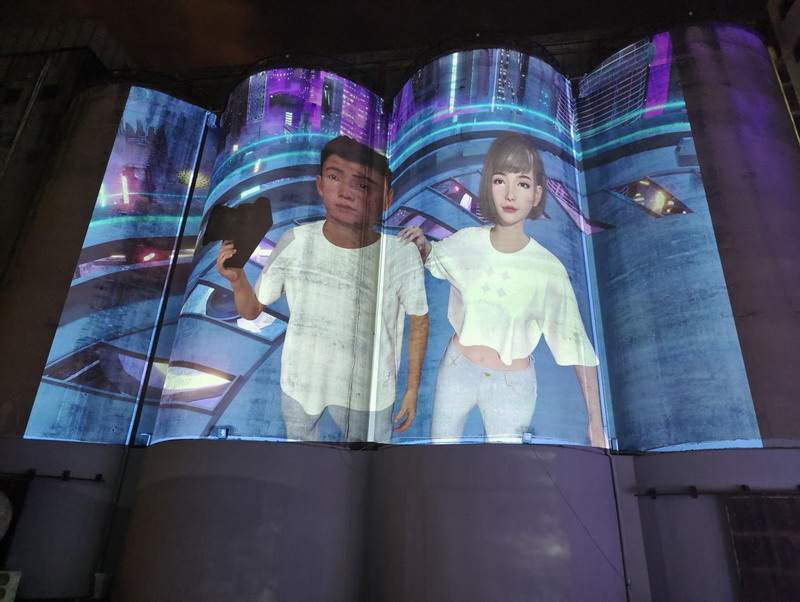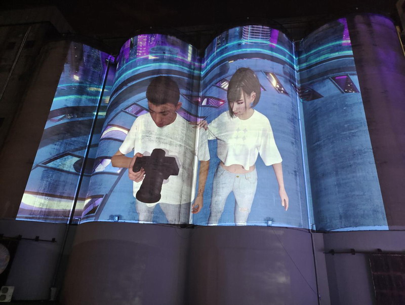 依托2萬流明超高亮度和震撼的色彩表現(xiàn)力,4臺NEC英雄系列雙色激光投影PX2000UL+,在每個直徑為12米、整體高度達32米的4個筒倉上投射出畫面高度為23米、整個投影面積超過1500平方米的巨幅影像,令筒倉的巨型工業(yè)水泥墻化身數(shù)字空間的現(xiàn)實載體,為觀眾呈現(xiàn)了一場虛擬偶像、數(shù)字TWINLAND等炫酷的元宇宙數(shù)字體驗。大筒倉也得以在精彩紛呈的光影變化中抖落歷史的塵埃,以更具科技感、時尚感、潮流感和未來感的姿態(tài),呈現(xiàn)在深圳市民的眼前,成為深圳一張驚艷世人的光影名片。