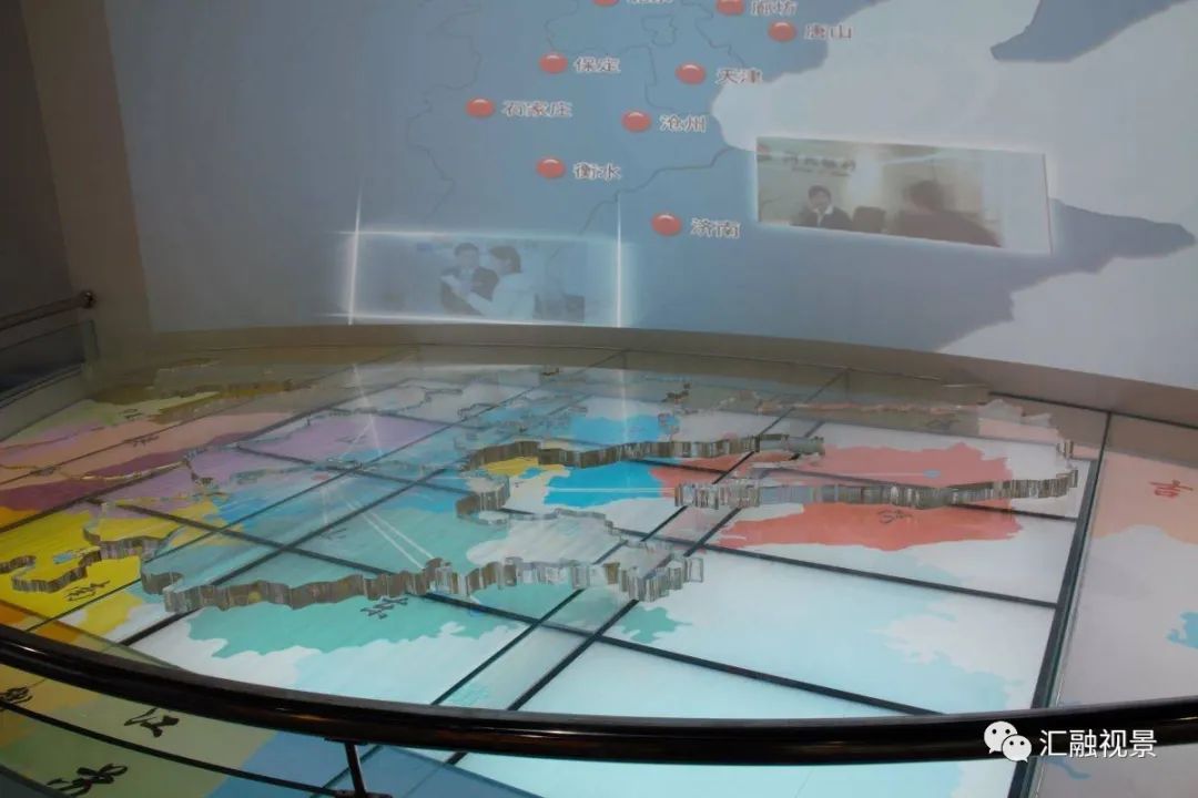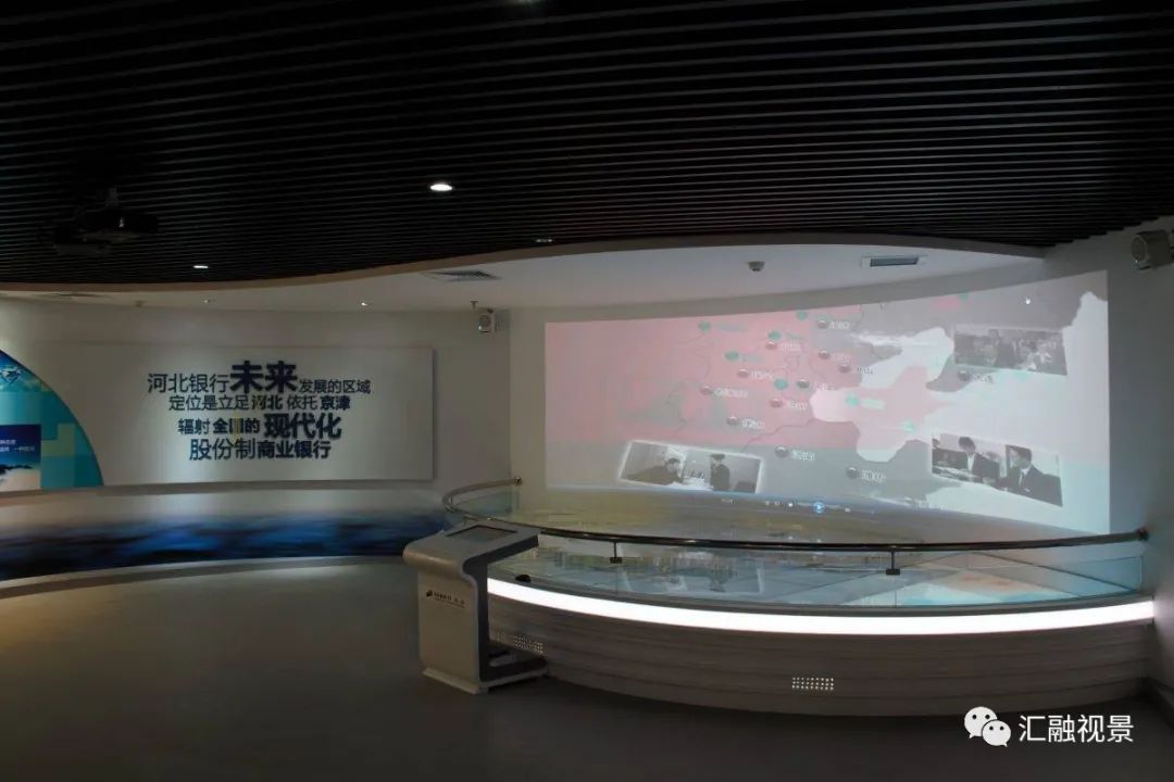 展區(qū)中的數(shù)字水晶沙盤位于銀行文化與成就對(duì)稱分布中間,配合最新的數(shù)字播放手法、環(huán)幕影像以及頂部投影,結(jié)合聲、光、電同步演示河北銀行未來(lái)戰(zhàn)略發(fā)展布局與未來(lái)規(guī)劃。
