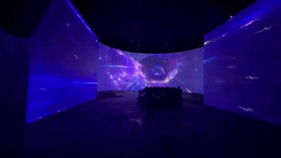為了打造感官沉浸和敘事沉浸,該項(xiàng)目采用了豐富多變的激光投影來營造視覺效果和故事鋪陳,其中包括幻影成像、全包裹環(huán)幕、沉浸式球幕以及直幕、夾幕、墻面、隧道等。