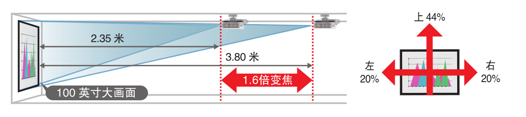 1.6倍變焦鏡頭實(shí)現(xiàn)靈活的1.09-1.77:1 投射比,可進(jìn)行近距離或遠(yuǎn)距離的大畫(huà)面投影,適合大型或小型房間內(nèi)固定安裝。