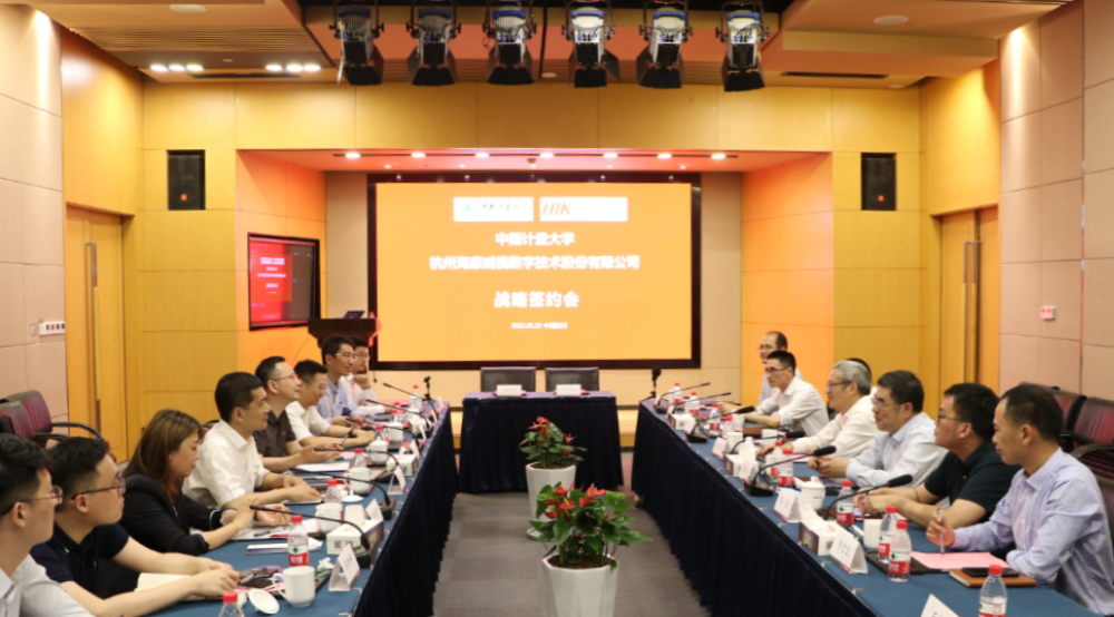 5月23日,中國計量大學與?低曉诤贾莺炇饝(zhàn)略合作協(xié)議。中國計量大學黨委書記張土喬,中國計量大學副校長葛洪良,?低暩呒壐笨偛霉駯|,海康威視政府行業(yè)總裁王英杰等出席簽約儀式。