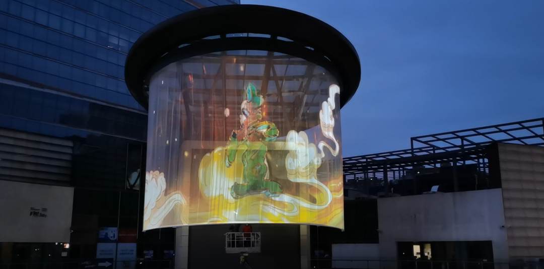 在中治和悅匯中庭環(huán)幕投影秀中,安恒采用4臺 SECO AWP-10KB1F戶外激光工程投影機(jī)側(cè)投融合,在弧形紗幕上投射出清晰完整的影像,配合環(huán)繞立體音響,全方位輸出音像,引爆現(xiàn)場熱烈氛圍。