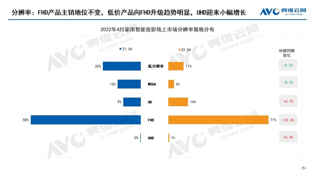 2022年4月家用智能投影線上市場(chǎng)分辨率規(guī)格分布圖片