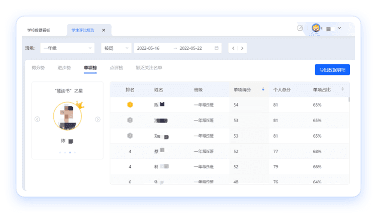 學(xué)生評(píng)比報(bào)告提醒老師關(guān)注扣分多、缺乏關(guān)注的學(xué)生,助力培養(yǎng)全面發(fā)展的“智少年”、“慧少年”。