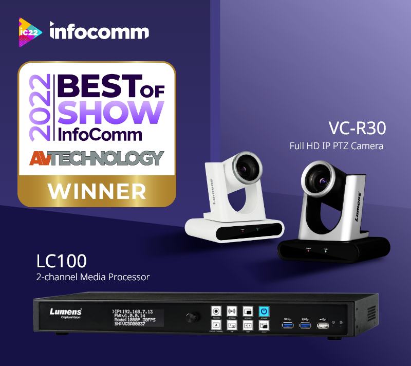 另外,給大家分享一個(gè)好消息,在最新的Infocomm USA上,Lumens多元化的Proav產(chǎn)品及方案得到了來訪者的高度評(píng)價(jià),每年Infocomm我們的新品都會(huì)得到組委會(huì)的青睞,今年我們推出的新品錄播一體機(jī)LC100和攝像機(jī)VC-R30都獲得了最佳產(chǎn)品獎(jiǎng)!