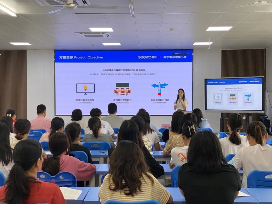 為滿足面向新時代和信息社會人才培養(yǎng)需要,需持續(xù)推動信息技術(shù)與教育深度融合,促進新技術(shù)、新媒體在課堂教學中的有效運用。在此背景下,希沃結(jié)合南寧市月灣路小學信息化建設(shè)水平和教師發(fā)展需求,在2022年5月25日,攜手南寧市月灣路小學舉辦了“信息化教學示范校建設(shè)項目”啟動儀式。
