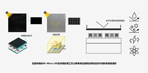 三星The wall全新系列采用Micro LED全倒裝封裝工藝,純黑密封技術、樹脂封裝,在應對外界潮濕、水汽、磕碰等表現(xiàn)強勁。