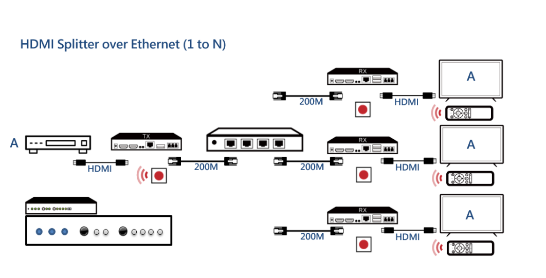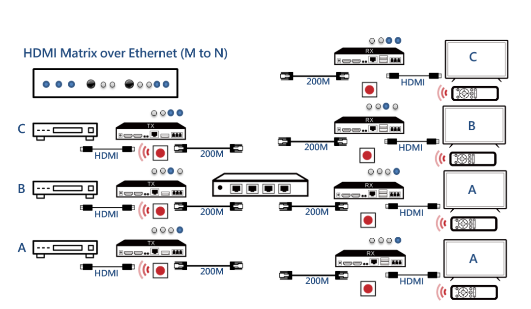 針對各種ProAV應用的靈活模塊化設計。顯示擴展器、分路器、切換器和矩陣,可根據(jù)不同配置,僅通過組合一種型號的發(fā)射機和接收機來實現(xiàn)。