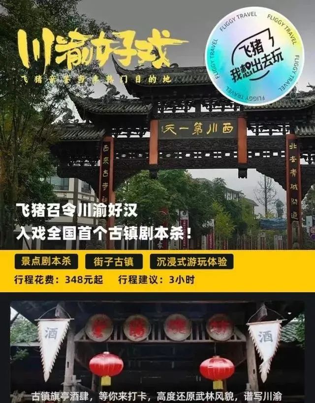 5月24日,飛豬推出景點“劇本殺”旅游產(chǎn)品,把當(dāng)下年輕人最喜愛的體驗游戲與旅游相結(jié)合,創(chuàng)新旅游產(chǎn)品內(nèi)容,“景點‘劇本殺’專門選”在川渝目的地首發(fā)落地。據(jù)悉,首款飛豬定制“劇本殺”旅游產(chǎn)品,將設(shè)置在長江郵輪上,民國風(fēng)主題的故事劇本,帶領(lǐng)玩家展開一次沉浸式的探秘體驗。