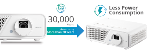 Y5擁有非凡的30000小時光源壽命,每天使用 4小時,使用時長可超過20年,相較于傳統(tǒng)燈泡及激光投影機,功耗更低,更加省電,節(jié)能環(huán)保;