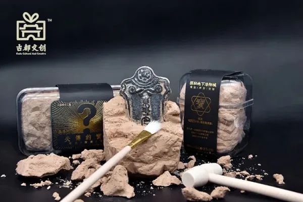 今年河南博物院推出的盲盒周邊則是另一個很好的例子。河南博物院巧妙地將文物制作為周邊產(chǎn)品,將文物封存在土塊里,使用贈送的洛陽鏟將土挖開,再用刷子刷去文物上的土渣,便可以在“考古”的過程中拆出驚喜的盲盒周邊。河南博物院還在盲盒周邊的熱度基礎(chǔ)上,開發(fā)了面向未成年人的現(xiàn)場考古團(tuán)建體驗。