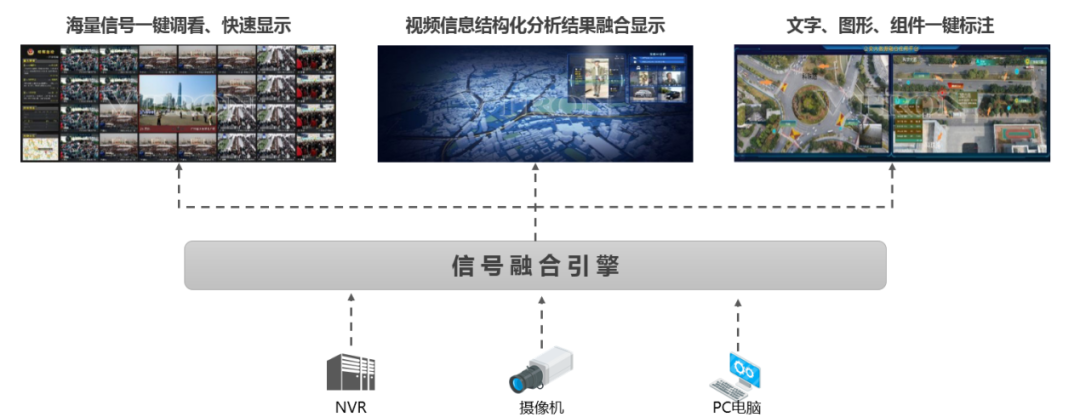 依托視頻編解碼和網(wǎng)絡(luò)傳輸技術(shù),實現(xiàn)監(jiān)控攝像頭、坐席計算機的圖像匯聚,滿足信號快速調(diào)看、監(jiān)控攝像頭云臺控制,第三方視頻結(jié)構(gòu)化分析結(jié)果融合展示、視頻標注標繪等應(yīng)用功能。