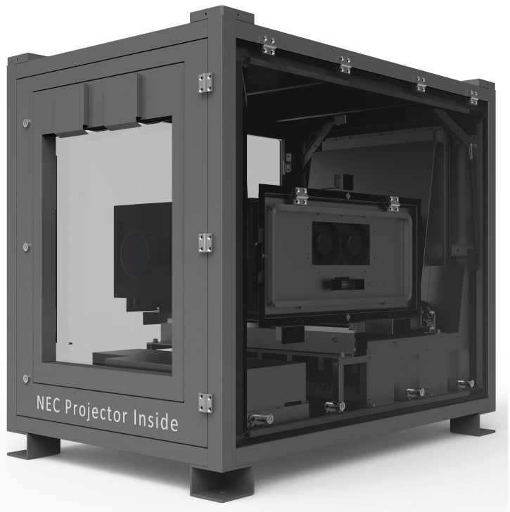 NEC投影機定制箱體采用全密閉結(jié)構(gòu),最高可達IP65級防塵、防水等級,無懼灰塵、風(fēng)雨侵蝕;采用智能恒溫、恒濕系統(tǒng),對箱體內(nèi)的溫度進行實時、精準調(diào)節(jié),確保恒溫、恒濕;此外,還增加了吊裝、疊加、除霧、俯仰角調(diào)整等系列人性化功能,使其操作更加便捷。NEC高品質(zhì)投影機+NEC投影機定制IP65級智能戶外箱體將為更多戶外投影客戶提供更穩(wěn)定、更安心的一站式戶外投影解決方案。