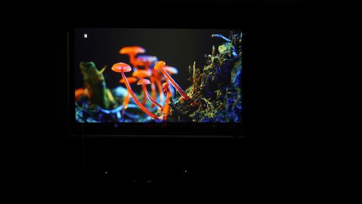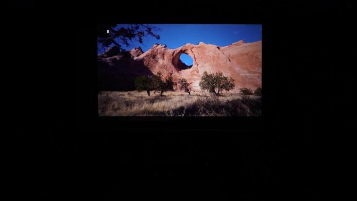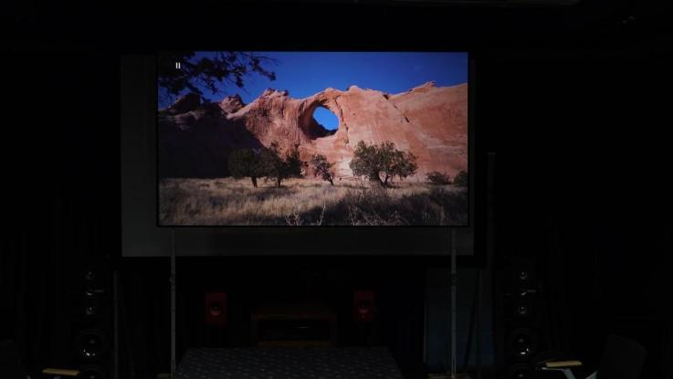 可以看出,在關(guān)燈狀態(tài)下,投射在XY黑晶微孔抗光幕的4K畫面透亮、細(xì)膩、平滑,亮度均勻,明暗對(duì)比強(qiáng)烈,輕易就感受到真實(shí)有力的陽(yáng)光感和金屬質(zhì)感,黑位也頗為扎實(shí)。打開燈光的話,就算屏幕受到強(qiáng)烈的、由上而下的光線直射,也能維持住畫面基本的色彩準(zhǔn)度。屏幕周邊環(huán)境光造成的影響更是非常有限,幾乎只是稍微降低了畫面的高光力度和對(duì)比度,主要細(xì)節(jié)基本沒有丟失,大部分色彩都能如實(shí)地還原,鮮艷度也得到了有力保障。