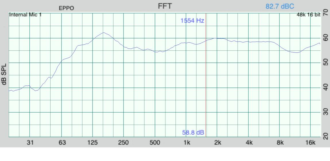 首先將某品牌的書架音箱放置在距離聆聽位3m左右的位置,播放一段全頻粉紅噪音,用FFT記錄下音箱的頻響曲線,再將音箱放置在幕布后15cm左右的位置,同樣保持3m距離后,重復(fù)此前播放和記錄的操作。兩次記錄的曲線如下所示:
