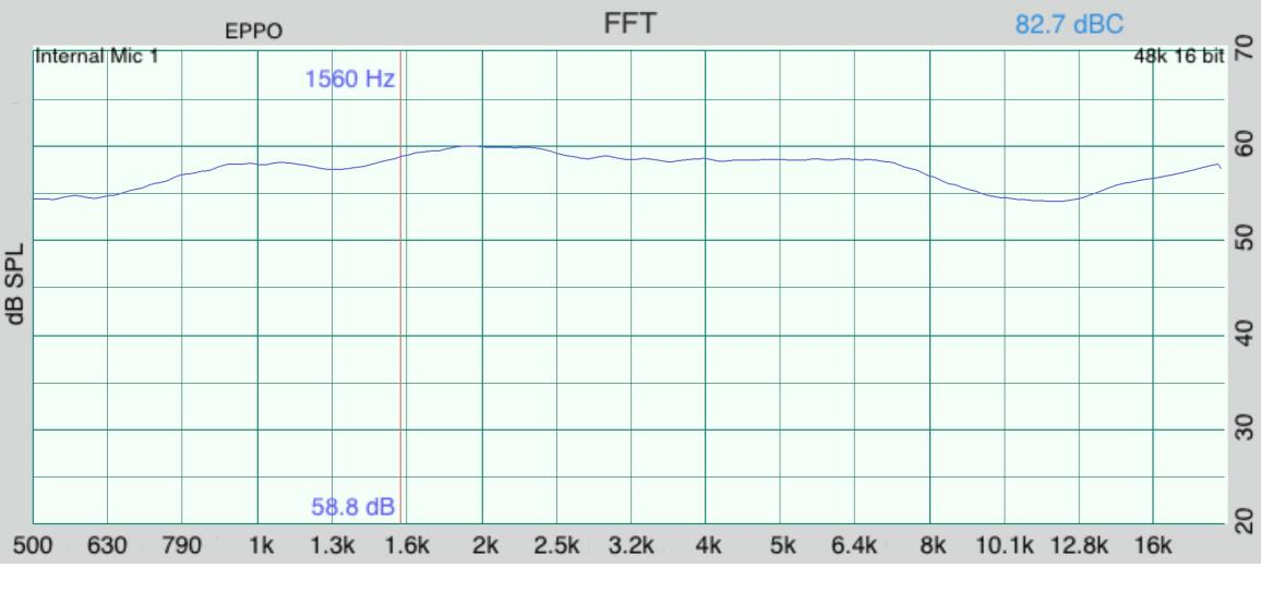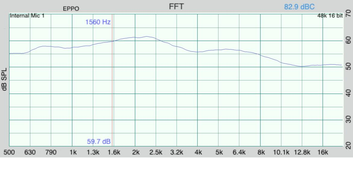 上為音箱實(shí)測(cè)的頻響曲線,下為音箱放置在幕布后實(shí)測(cè)的頻響曲線(500Hz-20kHz)