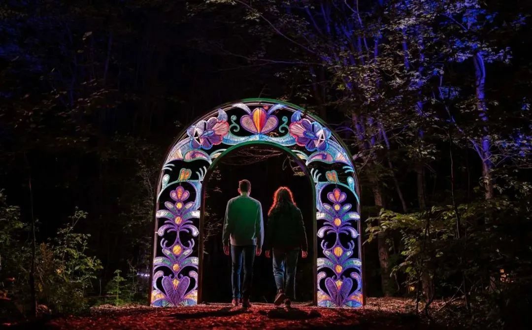整個(gè)夜游旅程從一個(gè)用燈光照亮的花拱門(mén)開(kāi)啟,穿過(guò)拱門(mén),便正式拉開(kāi)夜游序幕。