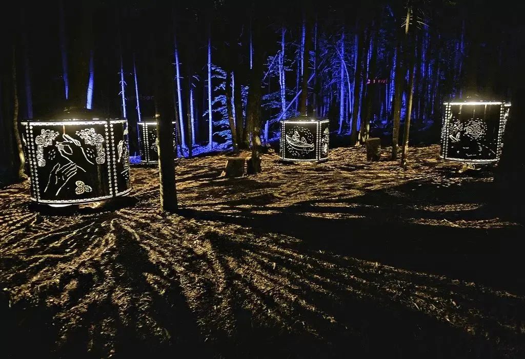 Wendake民族世代以打獵為生,保留了許多獨(dú)特的傳統(tǒng)習(xí)俗。Moment Factory深受這些傳統(tǒng)習(xí)俗和祖?zhèn)魃罘绞降膯l(fā), 通過(guò)其創(chuàng)始符號(hào)、傳統(tǒng)和儀式在7個(gè)場(chǎng)景中向土著文化致敬。同時(shí)在1.2公里的多媒體體驗(yàn)中結(jié)合了燈光、視頻投影、場(chǎng)景設(shè)計(jì)和原創(chuàng)配樂(lè),用以照亮 Huron-Wendat 民族的文化和遺產(chǎn)。