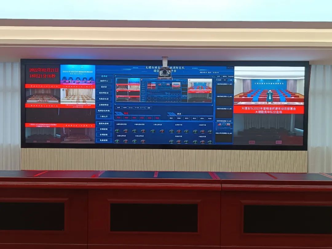 電視會(huì)議室2套液晶拼接屏,屏1拼接規(guī)模為2X2,共4塊共55寸液晶屏;屏2拼接規(guī)模為2X6,共12塊46寸液晶屏。會(huì)議中心的高清大屏則用于消防支隊(duì)召開社會(huì)單位聯(lián)動(dòng)聯(lián)席會(huì)議、黨建工作、中小學(xué)消防教育、官兵學(xué)習(xí)等使用。GQY視訊小間距產(chǎn)品具備低藍(lán)光、低輻射、零噪音、低溫度、觀看舒適等人性化健康設(shè)計(jì),可大大減緩決策者因長(zhǎng)時(shí)間進(jìn)行指揮調(diào)度、會(huì)議匯報(bào)帶來(lái)的視覺疲憊。