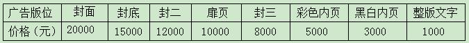 ○ 其它廣告:請柬20000元/3萬張;參觀證:20000元/獨(dú)家;參觀券15000元/獨(dú)家;電子簡報(bào)5000元/獨(dú)家;海報(bào)廣告:3000元/1000張;彩虹門5000元/個;汽飄(12m×0.75m)5000元/組;羅馬旗2000元/組;墻幅/室外立體廣告400元/㎡;桁架噴繪廣告200元/㎡。