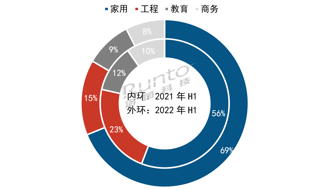 激光顯示技術(shù)已在家庭娛樂(lè)、亮化工程、商教等多個(gè)細(xì)分市場(chǎng)形成全應(yīng)用場(chǎng)景覆蓋。特別是家用市場(chǎng),通過(guò)激光電視和激光中長(zhǎng)焦形成兩條平行產(chǎn)品線(xiàn),上半年實(shí)現(xiàn)了五成以上的增幅,成為整個(gè)激光投影市場(chǎng)最強(qiáng)的增長(zhǎng)點(diǎn)。工程、教育、商務(wù)場(chǎng)景上半年受?chē)?guó)內(nèi)多地散點(diǎn)疫情影響,項(xiàng)目取消或延遲,市場(chǎng)份額受到擠壓,均呈現(xiàn)負(fù)增長(zhǎng)態(tài)勢(shì)。