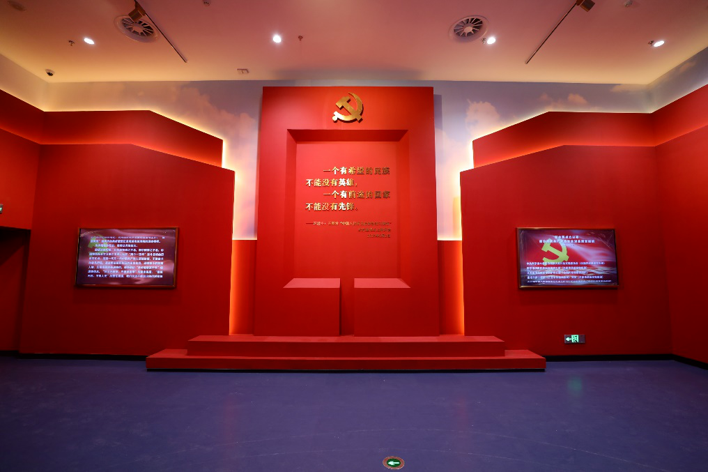 展覽設計中從主題、內(nèi)容、精神、空間、體驗、形式等多方面綜合表達,打造出一座藝術(shù)性的表現(xiàn)空間,以“聲、光、影、物”設計概念重織時空、展示文物、講述黨史、展望未來,給觀者以全新的體驗空間。