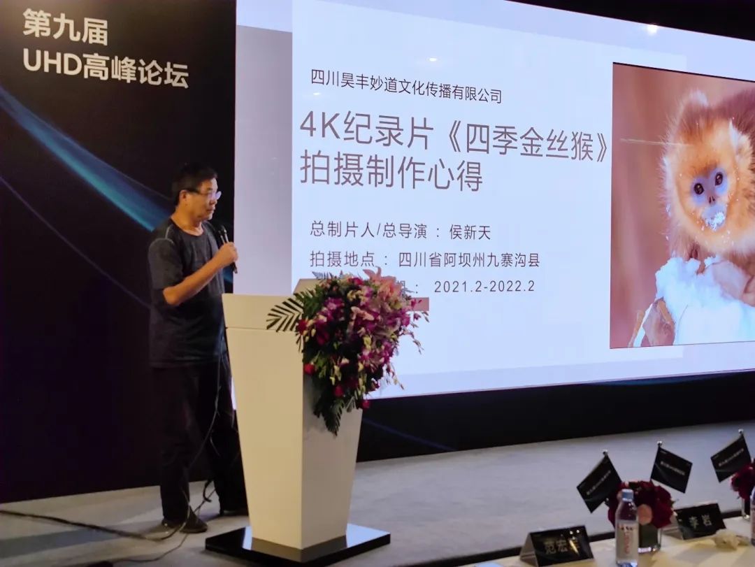四川昊豐妙道文化傳播有限公司總監(jiān)制兼總導(dǎo)演侯新天的作品《四季金絲猴》專題/紀(jì)錄片類榮獲本屆超高清杯專題片/紀(jì)錄片一等獎,侯導(dǎo)專程從外地趕來北京分享拍攝經(jīng)驗(yàn)。本片是在國家級自然保護(hù)區(qū)內(nèi)長期調(diào)研及拍攝的作品,講述了一群川金絲猴的四季生活,隨著金絲猴在不同季節(jié)生活環(huán)境的展現(xiàn),讓觀眾看到大自然中動物的真實(shí)生活狀態(tài)。山林間對金絲猴的拍攝難度非常大,本片所拍攝到的金絲猴運(yùn)動跳躍,吃雪與攝影機(jī)互動等畫面都非常珍貴。運(yùn)鏡從全景到特寫,景別豐富,還配有升格畫面,對猴子運(yùn)動瞬間的表現(xiàn)很有張力。