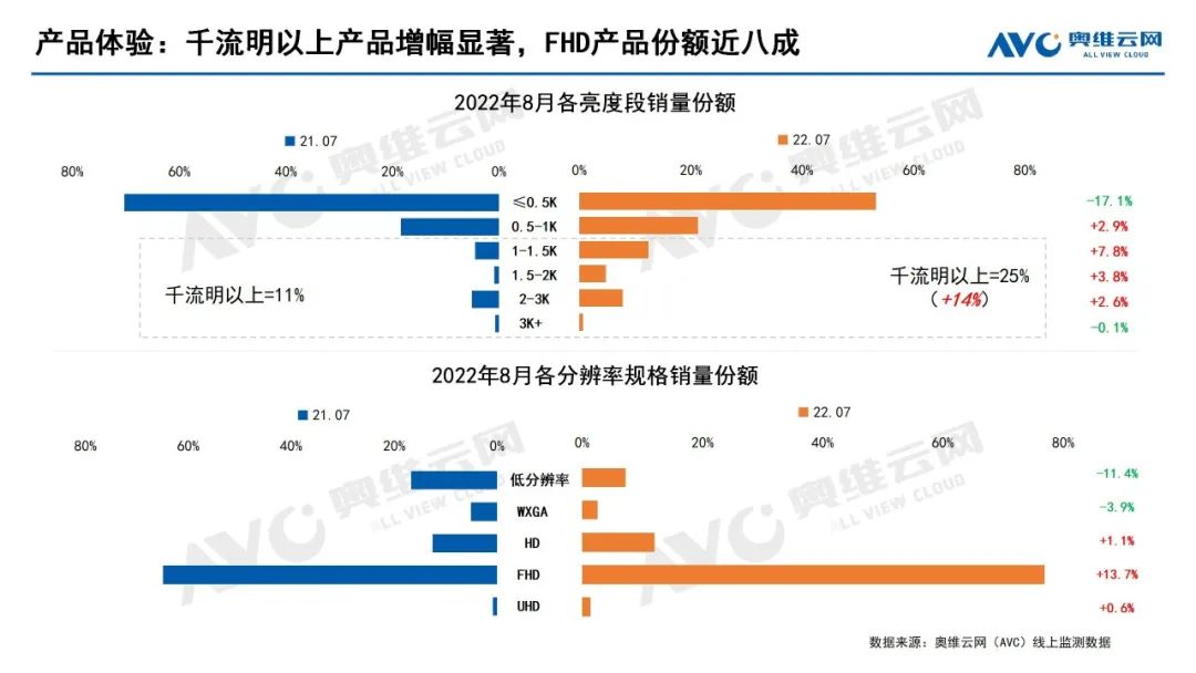 千流明以上產(chǎn)品增幅顯著 FHD產(chǎn)品份額近八成