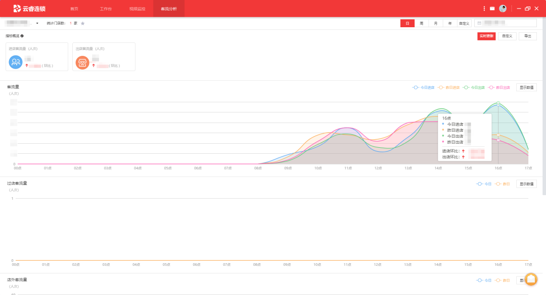 進(jìn)店客流統(tǒng)計(jì)曾是門店管理的難題,通過(guò)專業(yè)客流統(tǒng)計(jì)相機(jī)統(tǒng)計(jì)客流并匯聚到云睿連鎖平臺(tái),管理人員可直觀查看每家門店各時(shí)間段進(jìn)店客流數(shù)量,幫助門店合理安排工作人員排班,保障顧客在高峰期也可及時(shí)獲得服務(wù)。而通過(guò)平日與門店活動(dòng)期間客流對(duì)比,更能為門店促銷活動(dòng)提供科學(xué)依據(jù),助力門店優(yōu)質(zhì)經(jīng)營(yíng)。