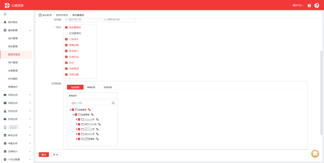 云睿連鎖平臺(tái)將遠(yuǎn)程門店管理權(quán)限基于內(nèi)部組織架構(gòu)進(jìn)行重新梳理與整合,構(gòu)建清晰遠(yuǎn)程管理“網(wǎng)絡(luò)”,在保障多門店并行監(jiān)管的同時(shí),實(shí)現(xiàn)十余種角色的權(quán)限清晰分配,不同管理角色可輕松查看管轄范圍內(nèi)門店情況,使管理更有針對(duì)性。