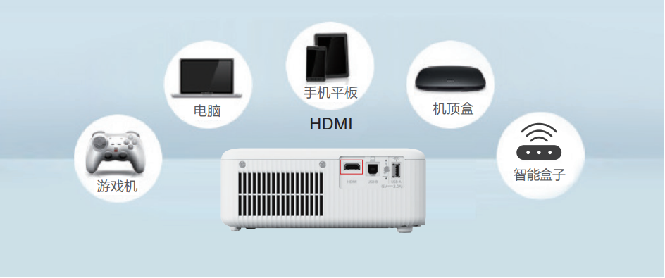 支持梯形校正及四角調(diào)節(jié)功能,不規(guī)則會議空間也可享受方正大畫面。高清HDMI接口連接更多設(shè)備,可供電USB接口,秒連智能盒子,讓投影擁有更多可能。