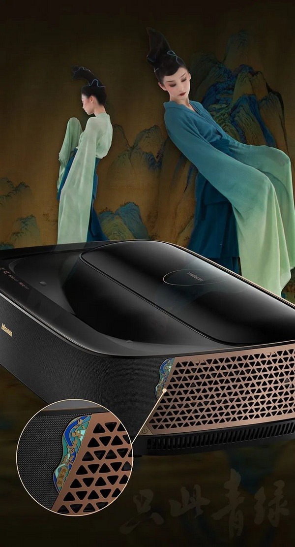 國風元素的靈活運用,是科技產(chǎn)品融合藝術(shù)品味的重要方向,海信激光電視88L9V與“只此青綠”國風完美結(jié)合,由掐絲琺瑯工藝勾勒出“千里江山”定制專屬標識,精致華貴又低調(diào)。此外,整體機身采用晶鉆覆膜工藝,在主機頂部營造出星光散布穹頂?shù)牧Ⅲw星空效果,夢幻浪漫又不失科技感。