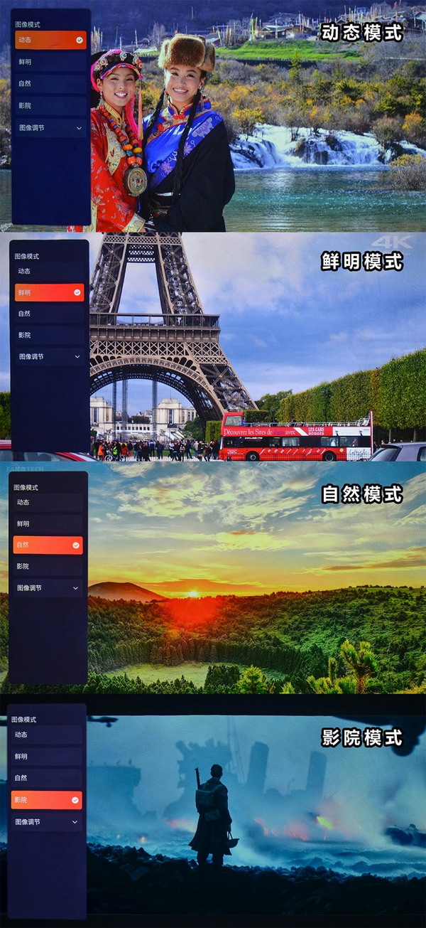 愛普生EH-LS800預(yù)設(shè)四種圖像模式,用戶可以根據(jù)播放內(nèi)容得特點,選擇適合模式,輕松獲得與內(nèi)容相匹配的優(yōu)化效果