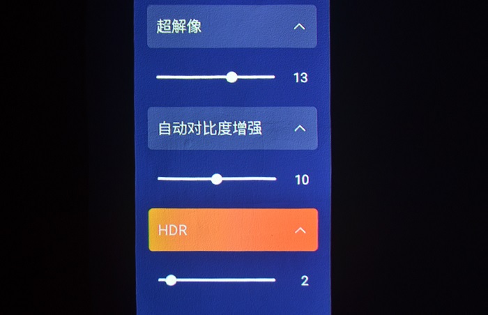 不僅有色溫、超解像等選項,用戶還可細致調(diào)節(jié)HDR數(shù)值達到理想效果